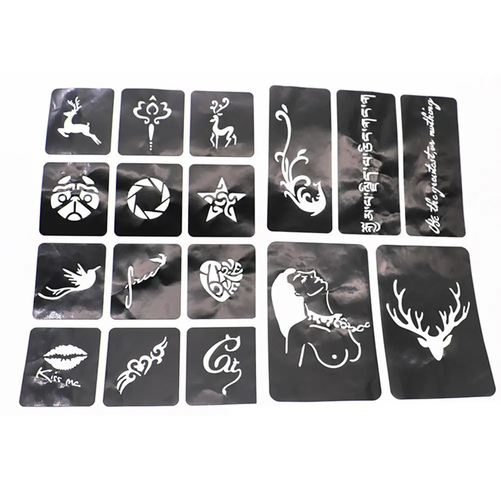 Полуперманентный набор для тату с блестками, трафареты для тату, 30 цветов, блестящая пудра, Кисть для макияжа, хна, тату, клей для лица, трафарет для бровей, набор