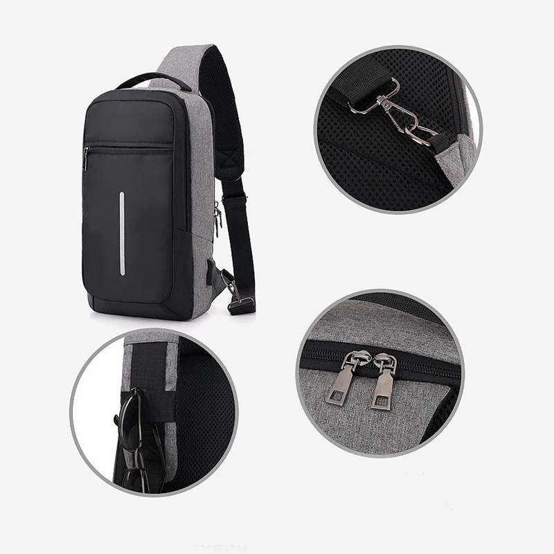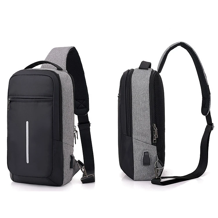 Модная Повседневная нагрудная Сумка-слинг унисекс с зарядкой через Usb на одно плечо, короткая походная сумка через плечо, одиночная Противоугонная Водонепроницаемая серая сумка