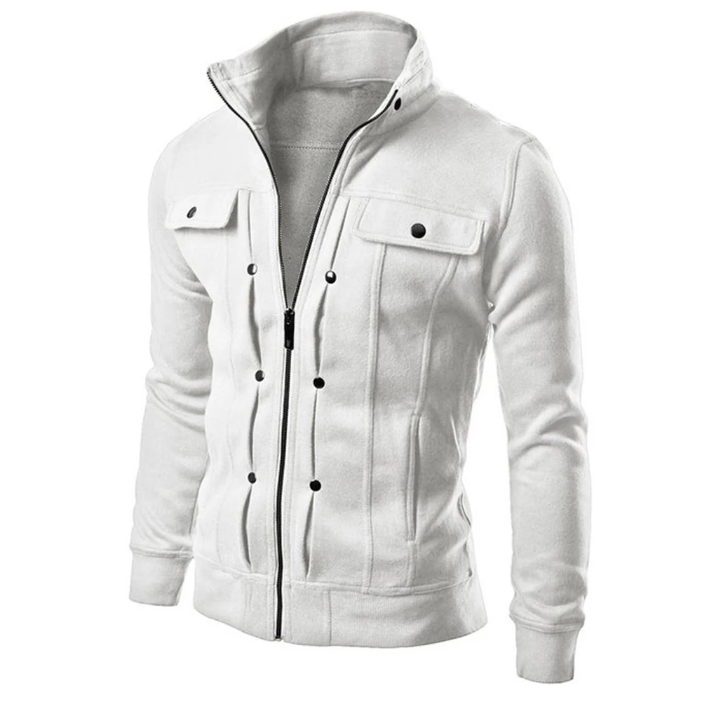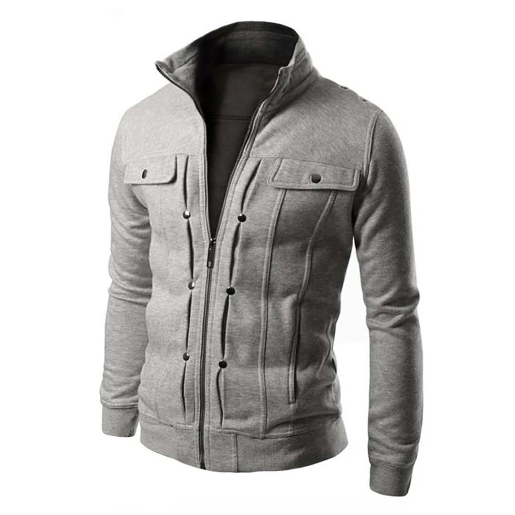 Мужская Осенняя зимняя однотонная Толстовка со стоячим воротником и пуговицами, пальто на молнии