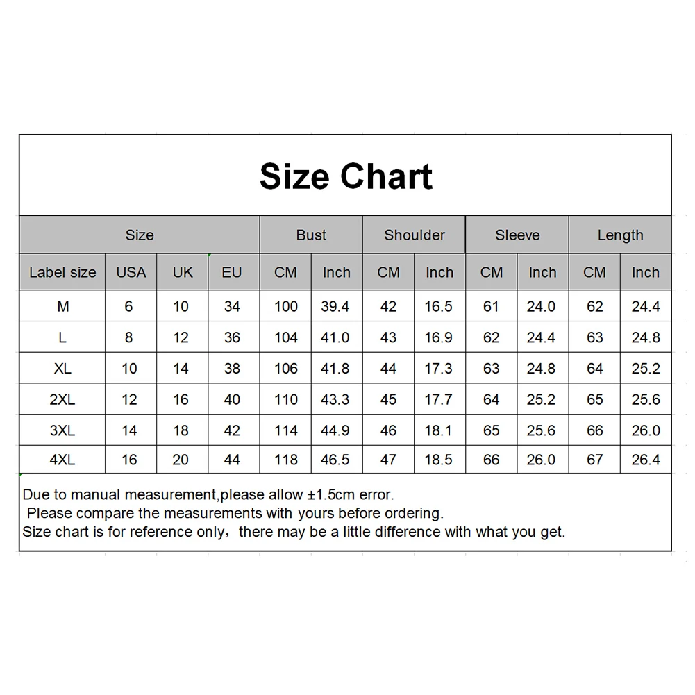 [Наш Размер XL] Обхват груди: 106 см/41,8 ", плечо: 44 см/17,3", рукав: 63 см/24,8 ", Длина: 64 см/25,2" (прибл.)