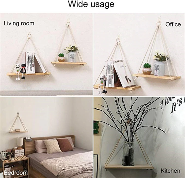 Деревянные подвесные полки с веревкой легко повесить на стену. Просто Повесьте гвоздь, винт или крючок.