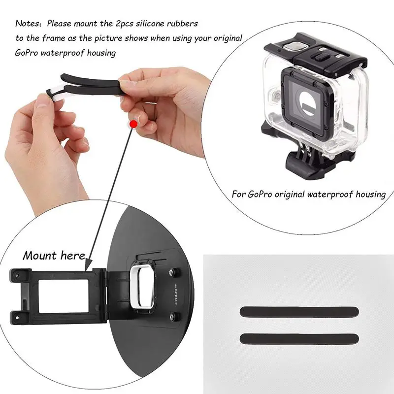 Характеристики: предназначен для камеры GoPro Hero 5/6. (Обратите внимание: когда вы используете свой оригинальный водонепроницаемый корпус GoPro с этим куполом, пожалуйста, установите 2 шт силиконовых резинок к задней рамке.)