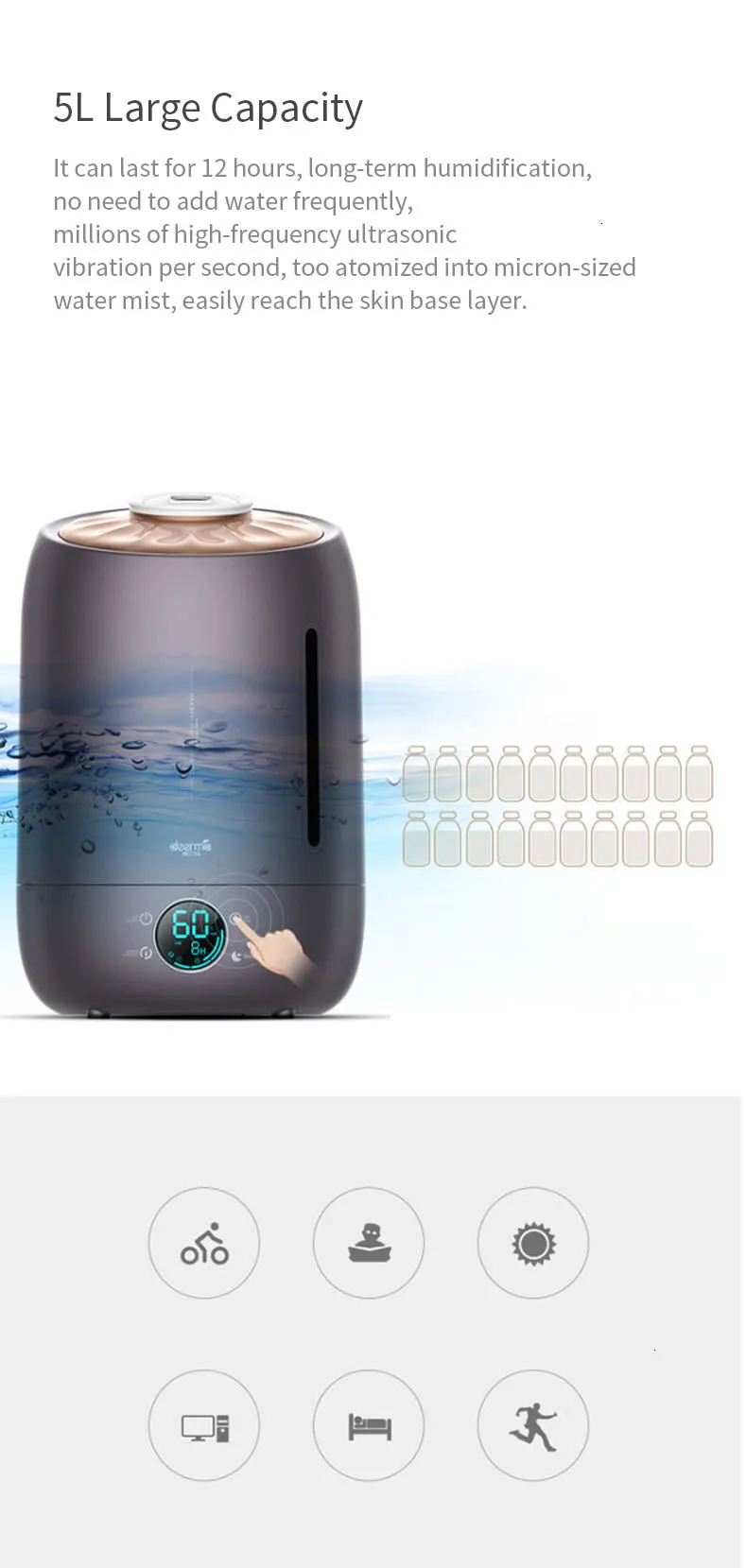 Deerma DEM-F630 увлажнитель 5л с сенсорной температурой Интеллектуальный увлажнитель постоянной влажности