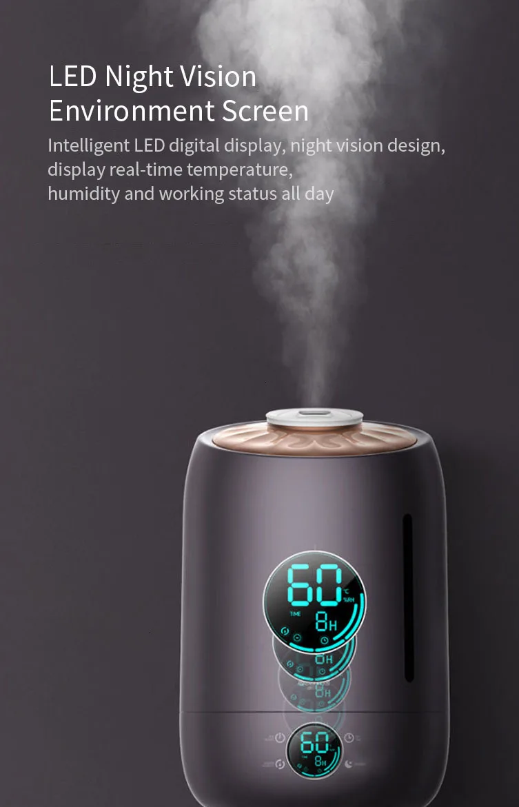 Интеллектуальный светодиодный цифровой дисплей, дизайн ночного видения, отображение температуры в реальном времени, влажности и рабочего состояния все время