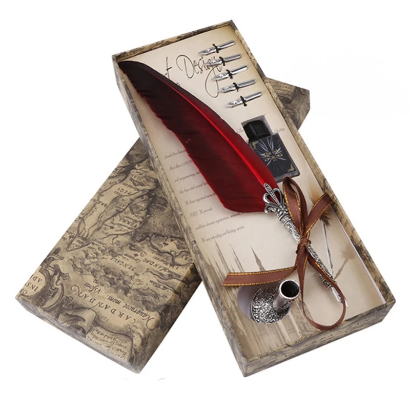 1 Набор английская каллиграфия перо Dip Ручка набор чернил канцелярские Подарочная коробка с 5x пером свадебный подарок перо перьевая ручка новинка