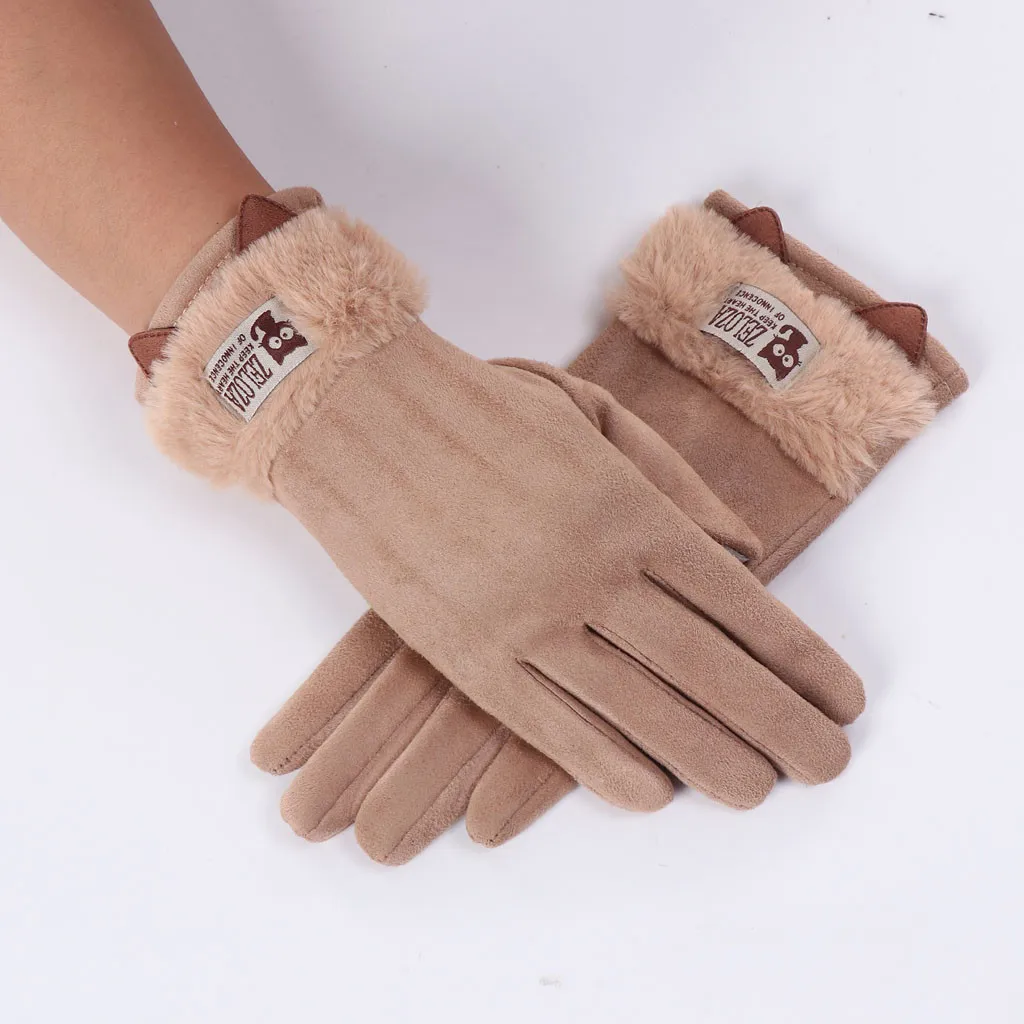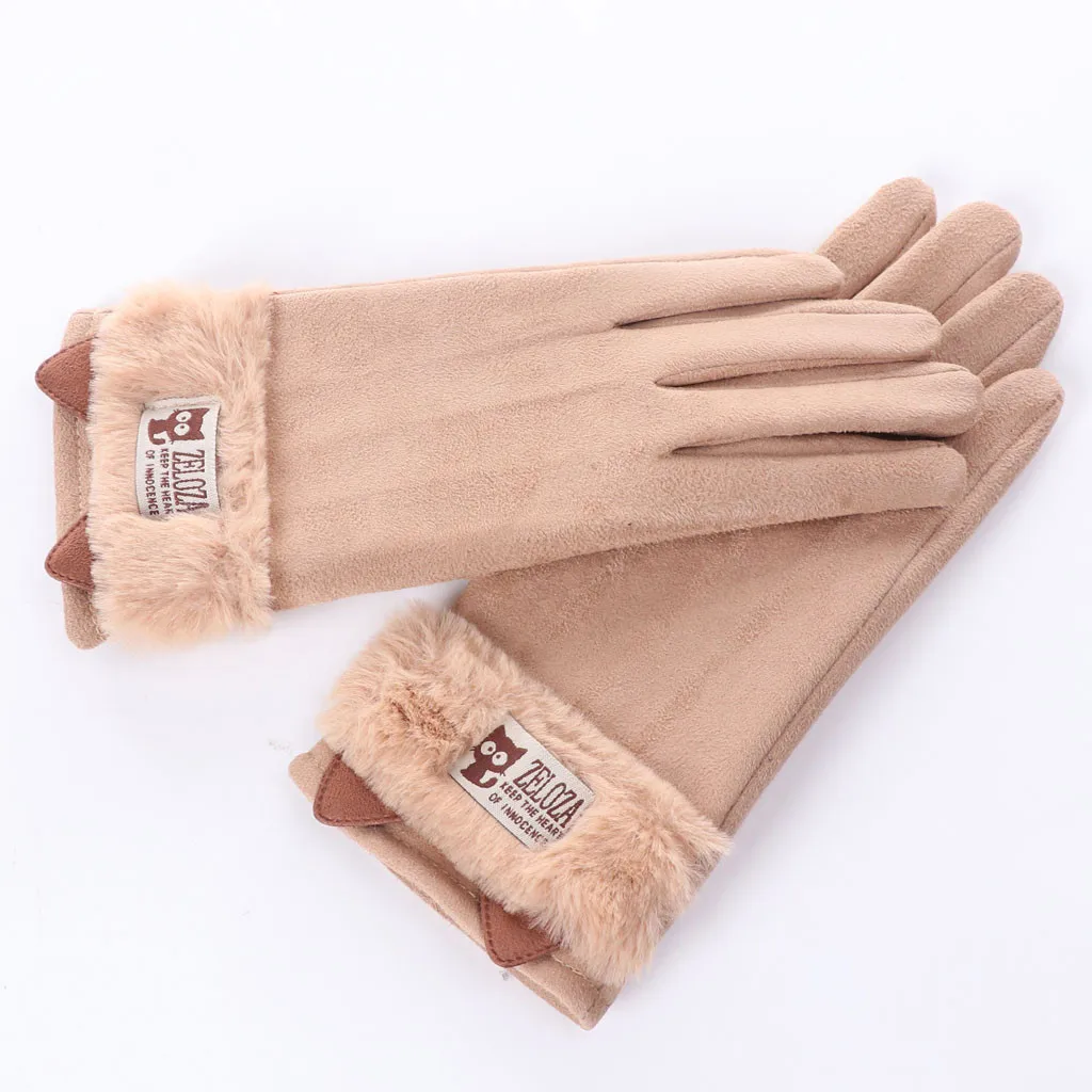 Женские Теплые Зимние флисовые перчатки с милыми кошачьими ушками, утепленные варежки