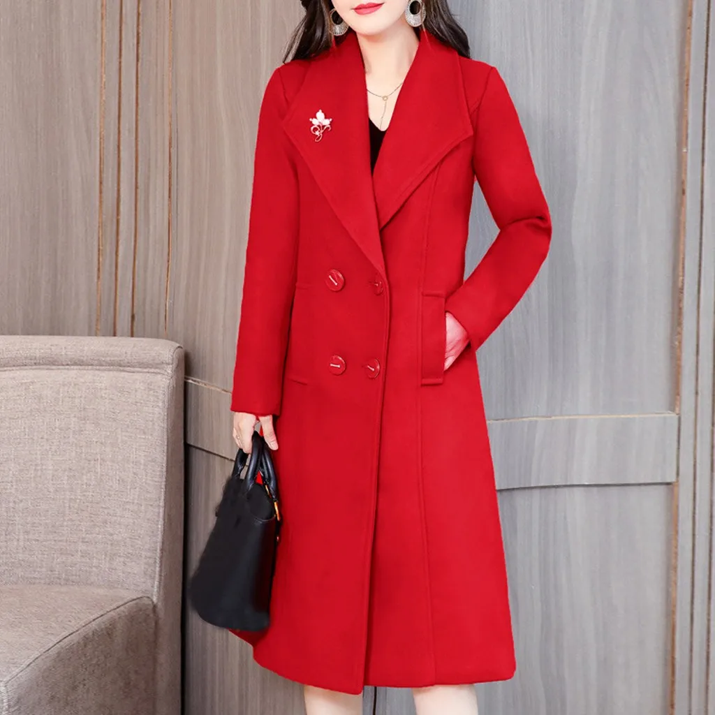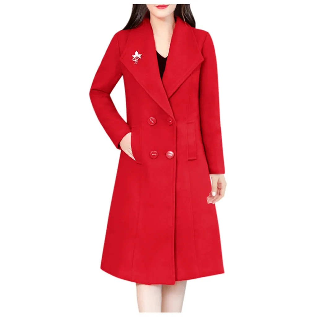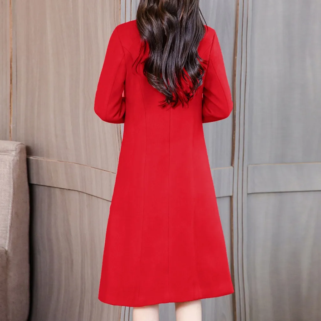 Женская рабочая однотонная винтажная зимняя офисная шерстяная куртка с длинным рукавом и пуговицами