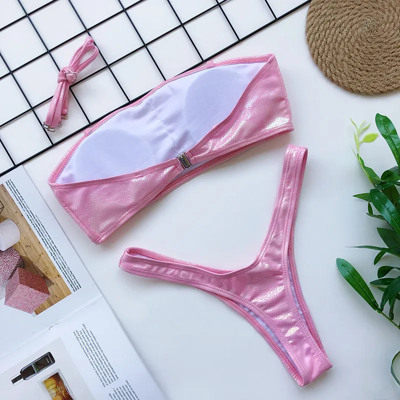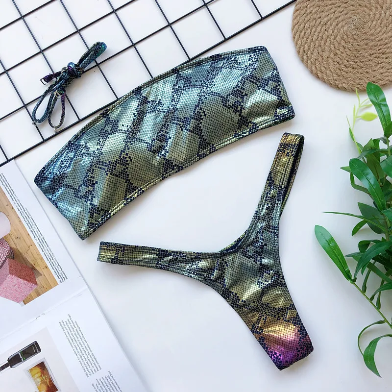 Новинка, сексуальное блестящее Бразильское бикини со змеиным рисунком, Женская купальная одежда, бандо, пуш-ап, купальник, женский купальный костюм, пляжный купальный костюм для девочек, лето 2020