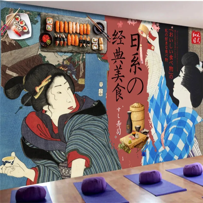 Японский Ukiyo-e Beauties культура фон настенная бумага 3D японская кухня суши Ресторан промышленный Декор настенная бумага 3D