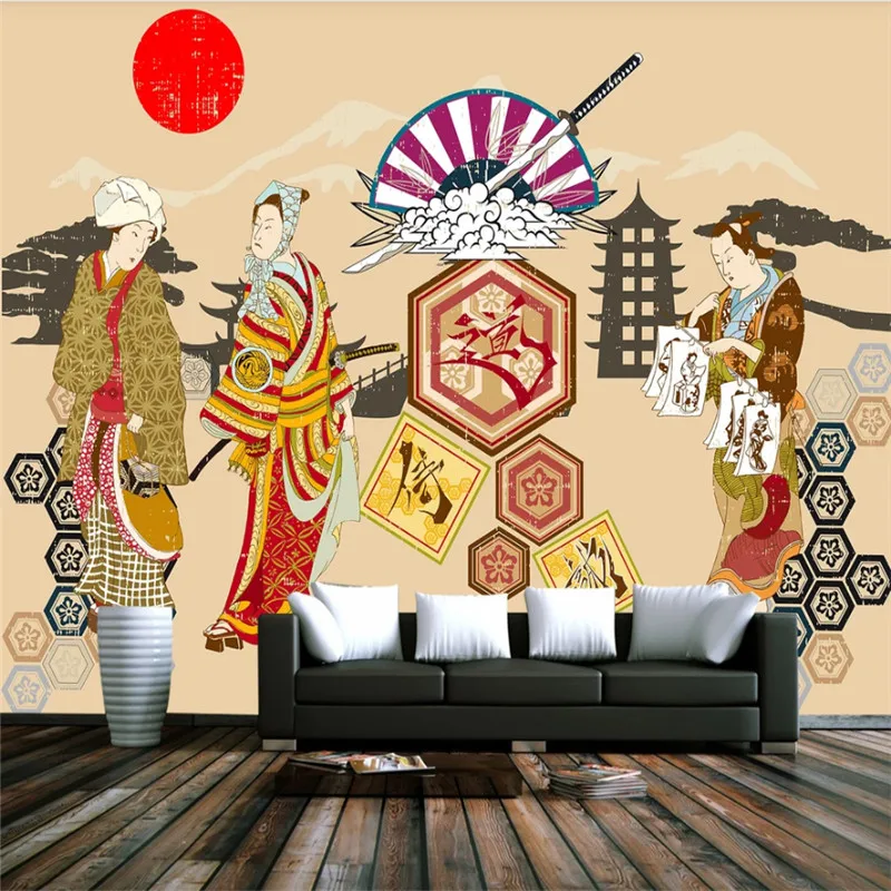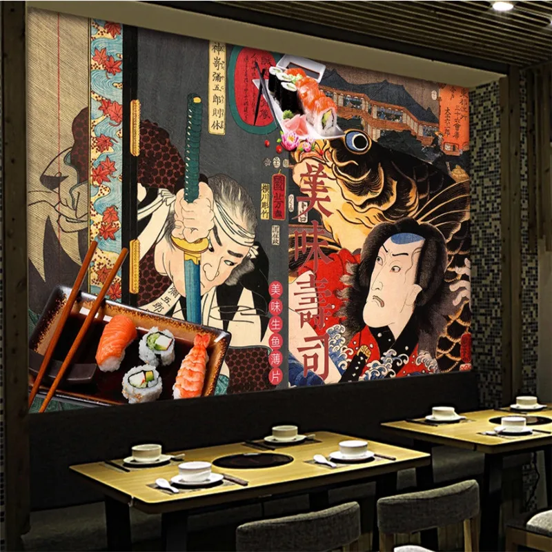 Пользовательские Ukiyo-e персонажи настенная бумага 3D японская кухня суши Ресторан настенное покрытие промышленный Декор настенная бумага 3D