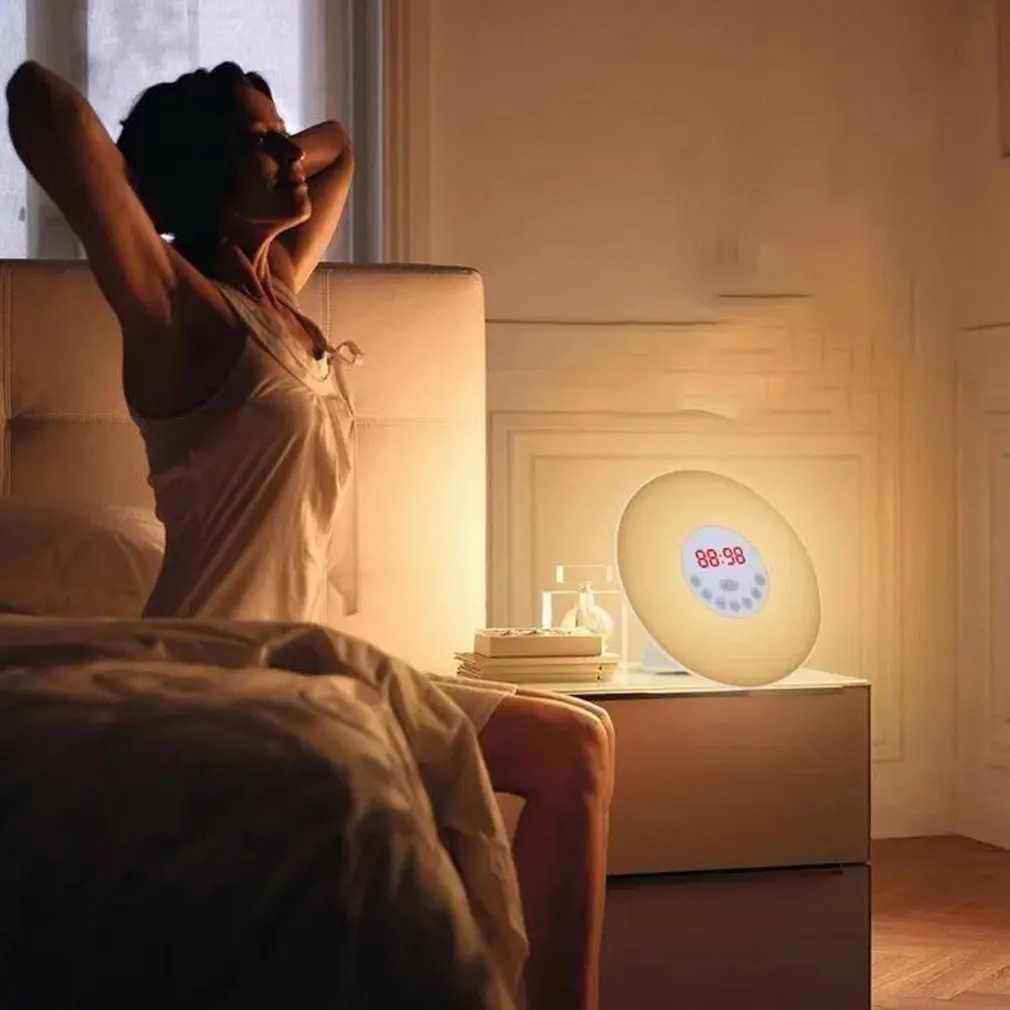 1. Интеллектуальное моделирование восхода/заката: с будильником имитирует прибл. 10-60 минут восхода солнца, постепенно увеличивая светильник от 10% до 100% и 10-120 минут заката, мягко затемняя светильник от 100% до 0%.
