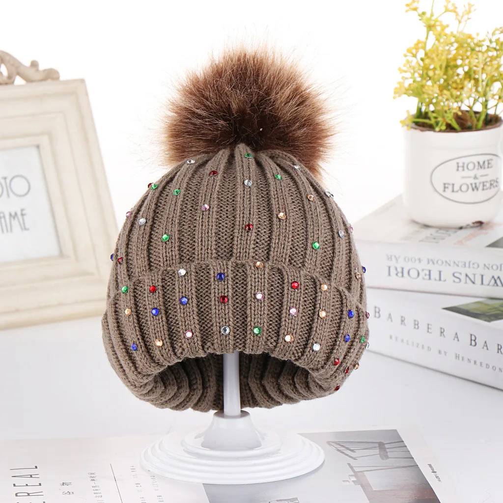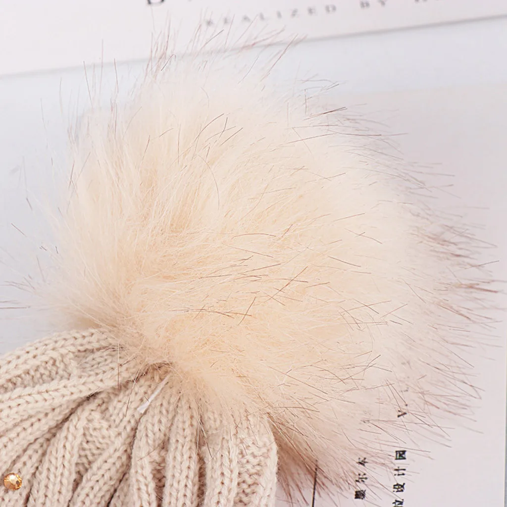 Детская Вязаная Шерстяная кепка, сохраняющая тепло, Зимняя кепка с шариками, стразы