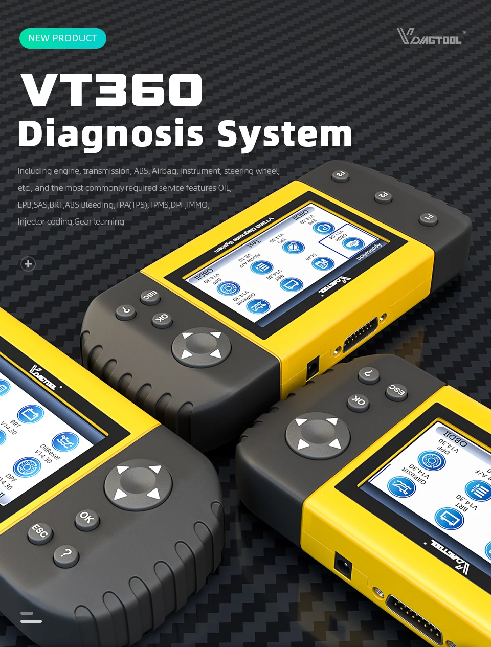 VDIAGTOOL VT360 является диагностическим инструментом с полной системой OBD2 функции сканирования + масло/TPMS/SAS/TPS/BRT сброс Sevice + пожизненное бесплатное обновление + Muit-языки.