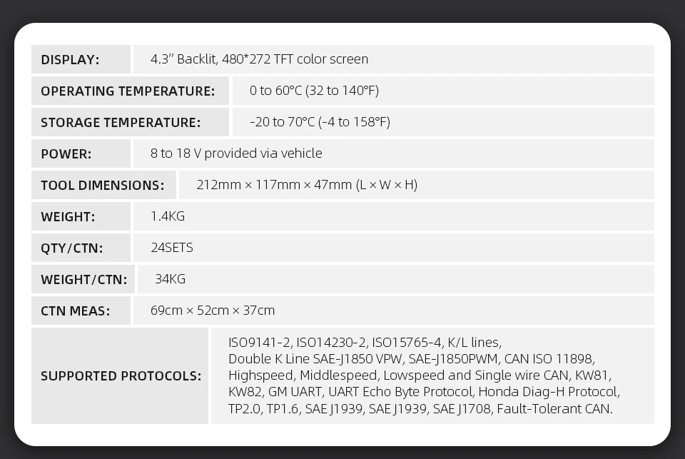 Supprt специальная функция покрытия транспортного средства: Поддержка большинства автомобилей OBD2, больше моделей могут быть обновлены с помощью обновления программного обеспечения.