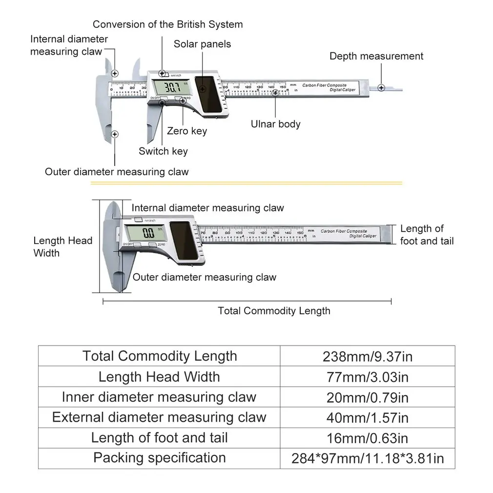 0-150 мм Солнечная энергия электронный точный цифровой вернир Линейка-кронциркуль пахиметр микрометр измерительный прибор
