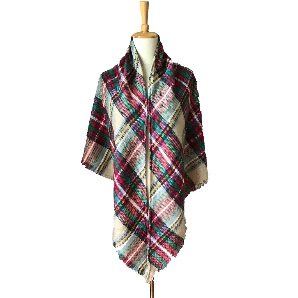 Женская теплая длинная шаль цветной шарф Повседневный Шарф Двусторонняя решетка большой