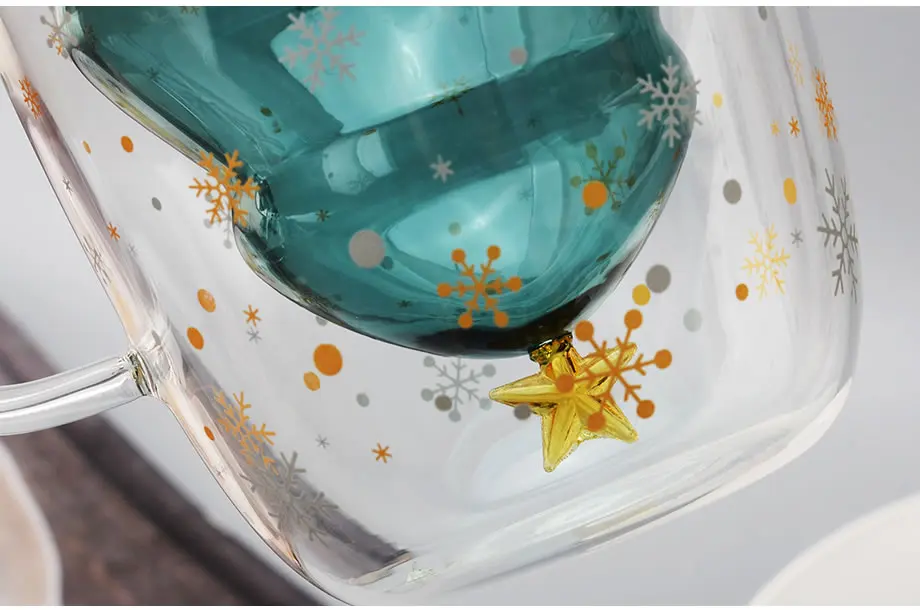 Креативная стеклянная кофейная кружка с двойными стенками, милое Рождественское дерево, стекло для кофе, чая, мультяшный стакан для питья, бокал для вина es