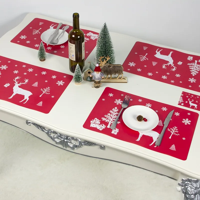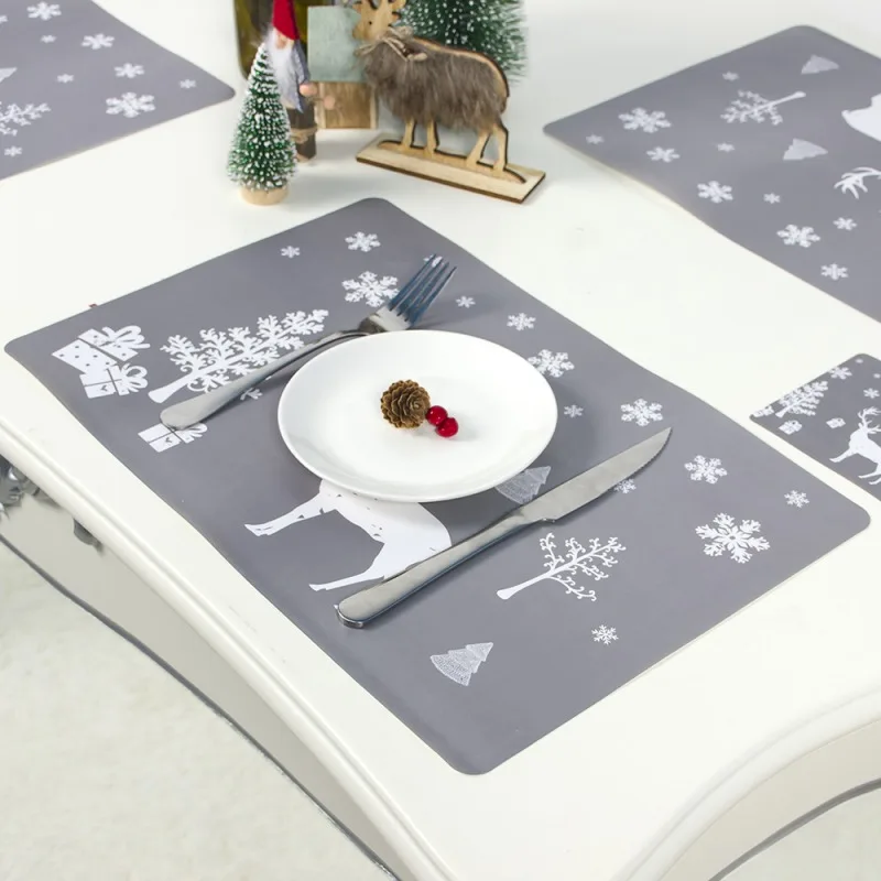 Один стол Рождественская салфетка под приборы Набор напечатанный зимний обеденный коврик для кухонного стола украшение дома отдыха 6 подстилок 6 подставок