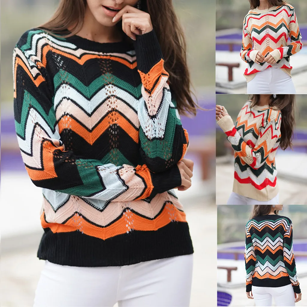 Женский Повседневный свитер с открытыми плечамиПолоса