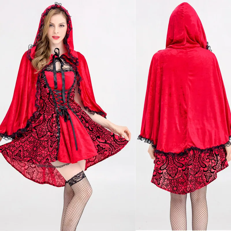 Женский костюм красного цвета с капюшоном для взрослых; Женские вечерние костюмы на Хэллоуин; Нарядное платье для костюмированной вечеринки