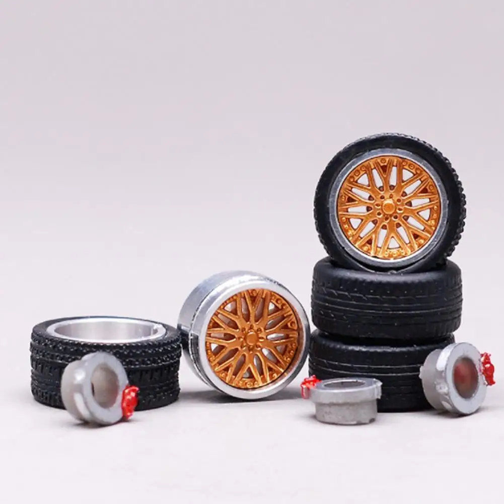 4 шт./компл., изготовленные на заказ литые диски, набор, 2 оси, 4 концевые колпачки для 1/64 автомобилей, модель автомобиля, винтажные шины, модифицированные Литые Автомобильные сменные колеса