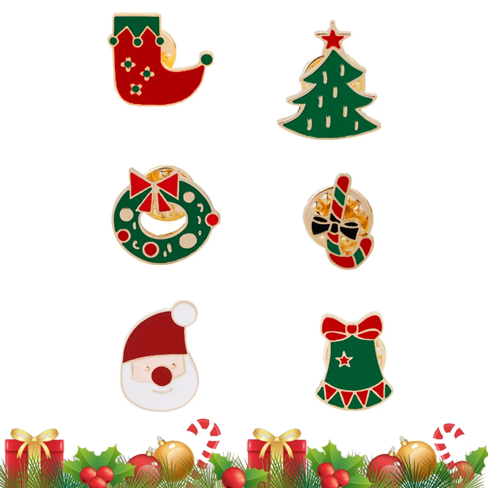 6 Pcs Christmas Brooches Festive Fashion Cartoon Boutonnieres for Sweater Clothes