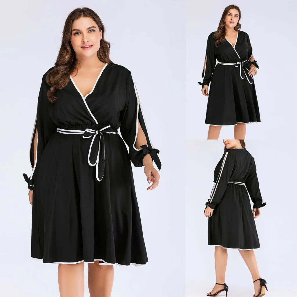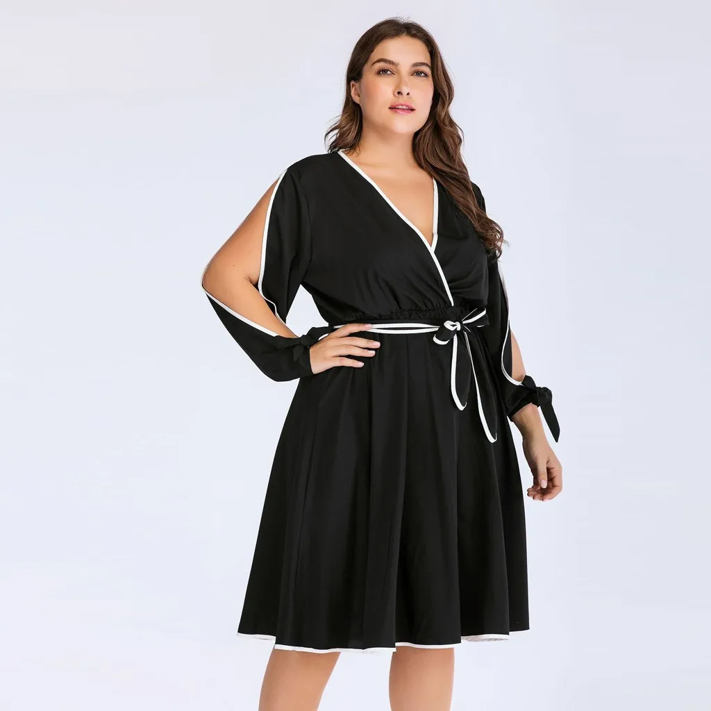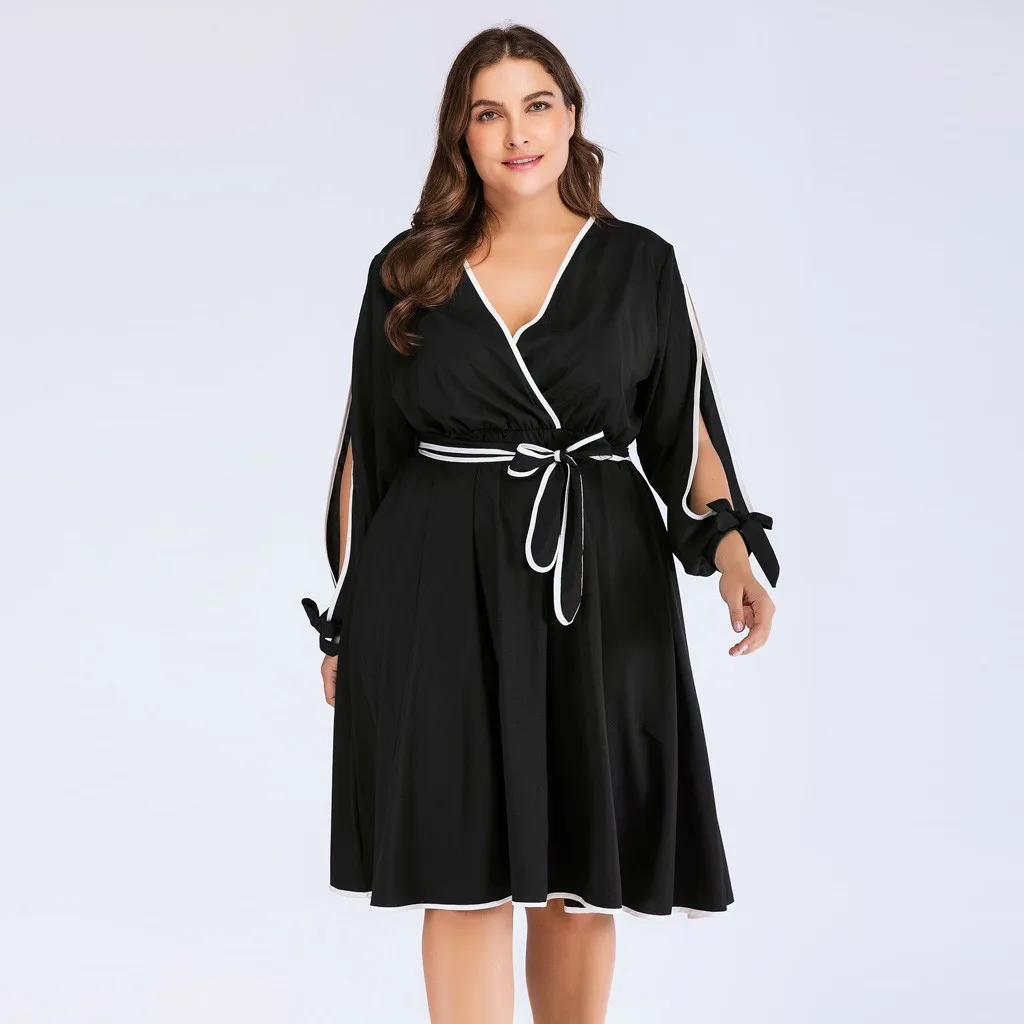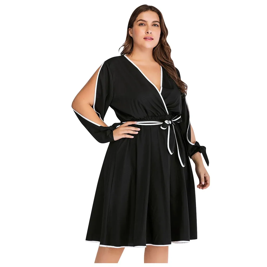 Женское модное Повседневное платье с завязками и бантом, однотонное платье с высокой талией, размера плюс