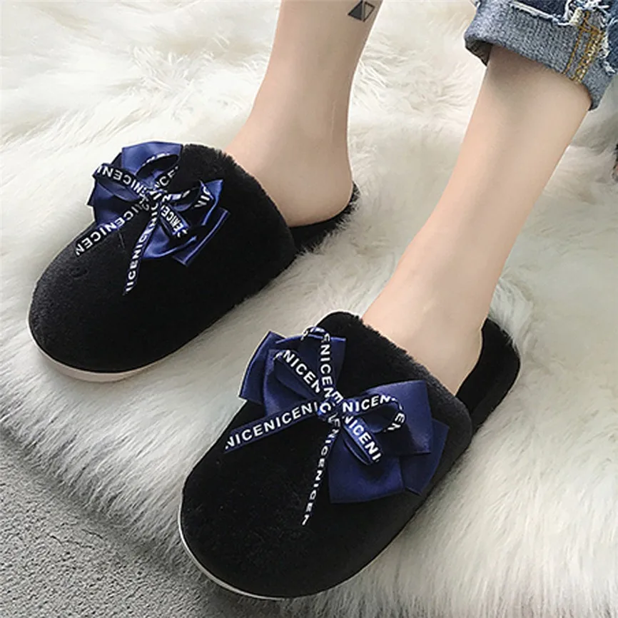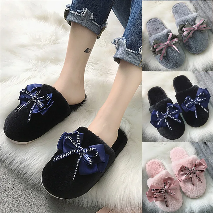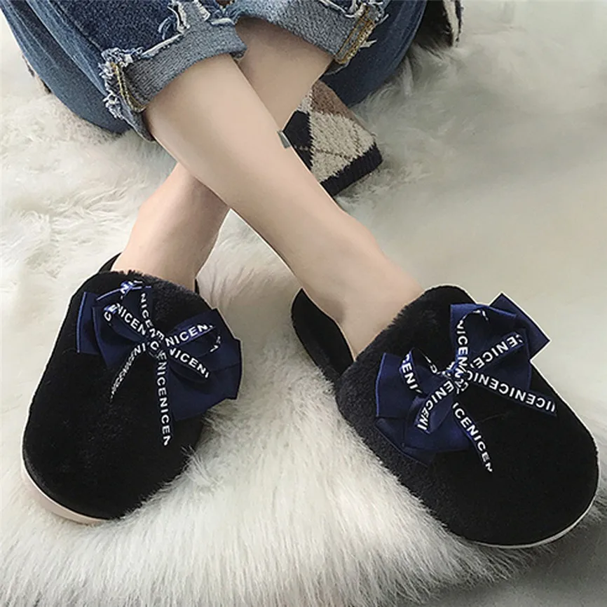 Женские домашние тапочки; Зимняя нескользящая обувь на плоской подошве с закрытым носком; Повседневные домашние тапочки