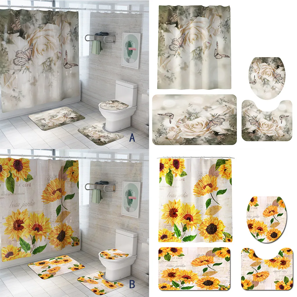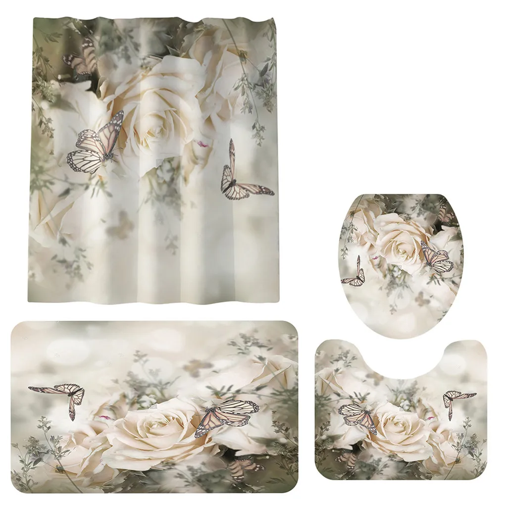 Посылка входит:1 квадратный ковер, 1 U-ковер, 1 туалетный ковер, 1 занавеска для душа, 12 крючков