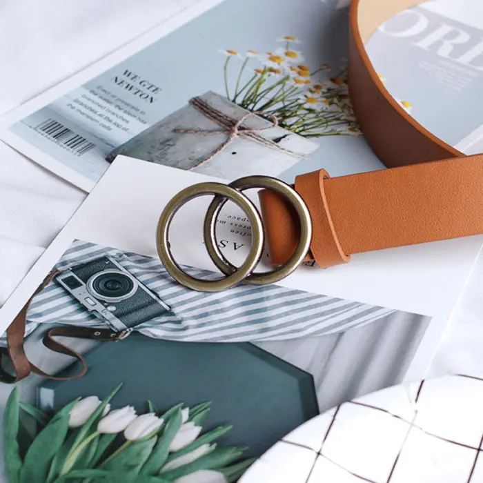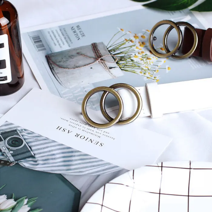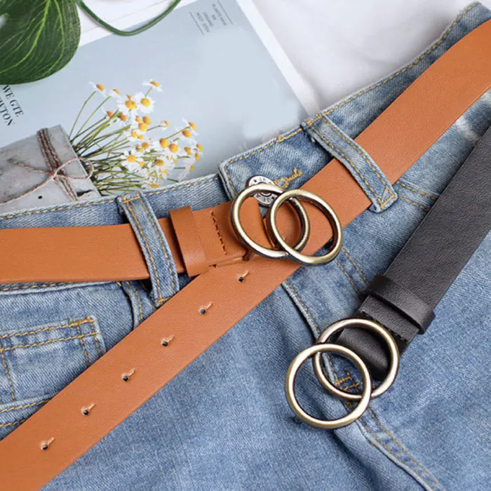 Женский кожаный ремень джинсы брюки поясной ремень с двойным уплотнительным кольцом Пряжка из сплава KS-доставка