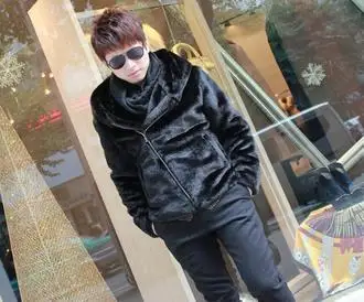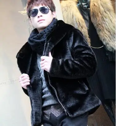 Parka Warm Winter Men's Faux Mink Fur Outwear Jaqueta Masculina Thicking Black Hooded Imitation Mink Fur Coat Cheap D46