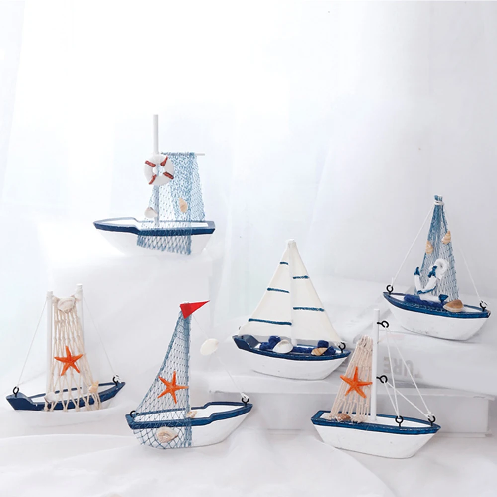 Детский Деревянный Парусный корабль, игрушка в средиземноморском стиле, украшение для дома, ручная работа, резная Морская Лодка, модель, подарок, реквизит для фотографии, игрушки