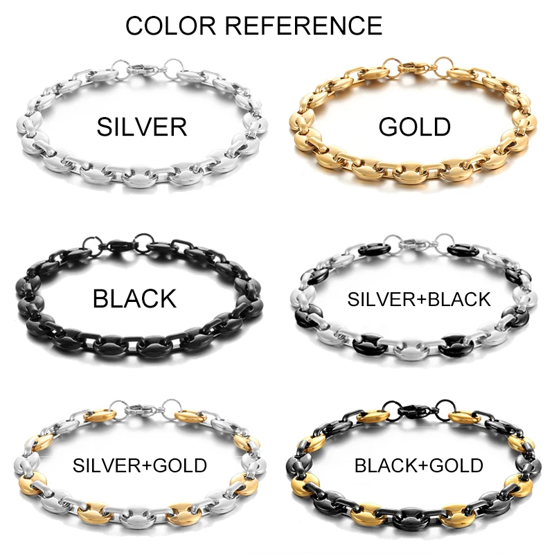 Браслет для мужчин, браслет из нержавеющей стали, кофейные бобы, звено цепи, браслеты для мужчин и женщин, мужские подарки, ювелирные изделия, браслеты
