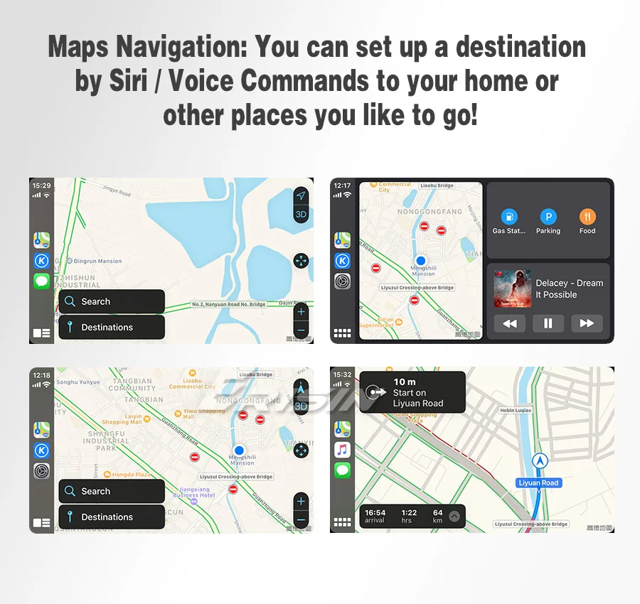 Простое подключение: Установите приложение CarPlay на автомобильный Android стерео, затем подключите iPhone / Android телефон и автомобильный аудио через USB интерфейс для использования.