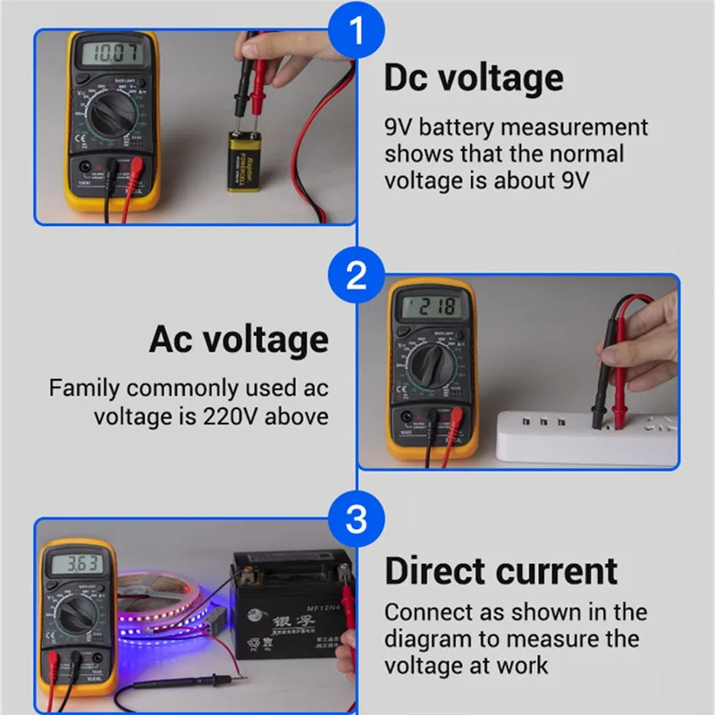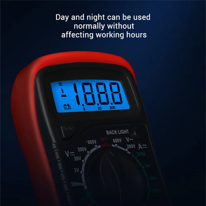 Высокое качество 100% новый бренд. Цифровой мультиметр-практичный инструмент для использования электриком. Легко управлять и показания указываются непосредственно на экране. Его можно использовать для ремонта всех видов печатных плат. Это также идеальный инструмент обучения для студентов. ЖК-дисплей высотой 15 мм. Максимальный дисплей: 1999, автоматический дисплей полярности. Портативный и компактный дизайн, защита от перегрузки на всех диапазонах. Тест диода в сборе/тест транзистора P-N соединения/тест транзистора HFE. Тест на непрерывность с звуком зуммера в цепи. Индикация низкого напряжения батареи. Напряжение постоянного тока: 200 мВ/2 в/20 в/200 В ± 5%, 600 В ± 8%. Напряжение переменного тока: 200 В/600 В ± 2%. Постоянный ток: 200μA/2ма/20мА ± 1%, 200мА ±1. 5%, 10А ± 3%. Сопротивление: 200 Ом/2 кОм/20 кОм/200 кОм/2 МОм ± 8%. Защита предохранителя: F-200mA/250 В. Рабочая температура: от-0 до 40. Индикация превышения диапазона: только цифра "1" на дисплее. Индикация полярности: "-" отображается для отрицательной полярности. Индикация низкого заряда батареи:-/+ дисплей. Батарея: 9 В (батарея не входит в комплект). Размеры: приблизительно 138 мм x 69 мм x 31 мм. # Батарея не будет включена в доставку из-за новых правил воздушной почты. Посылка в комплекте Цифровой мультиметр с ЖК-дисплеем-1 шт. 2 испытательных нагрузки. 1 x оранжевая задняя крышка. 1 х Руководство пользователя на английском языке.