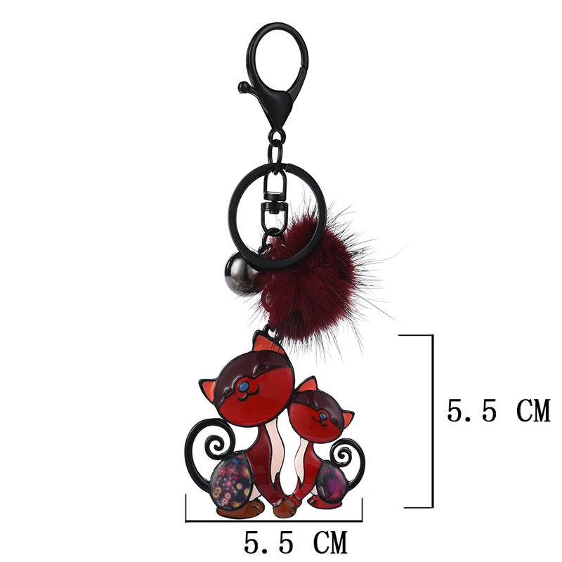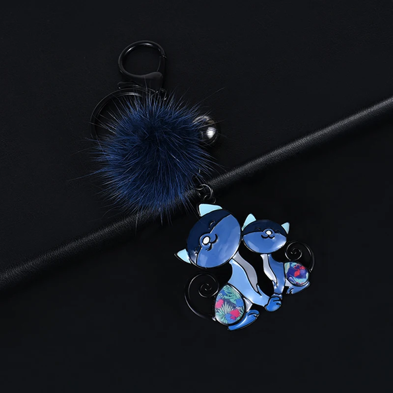 Cring Coco 2019 Популярные Меховые помпоны для кошек, Брелки для женщин, лучший подарок для друзей, эмалированный ключ из металлического сплава, кольца на цепочке, трендовые подвески для автомобильных сумок