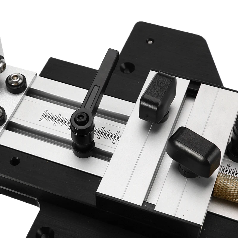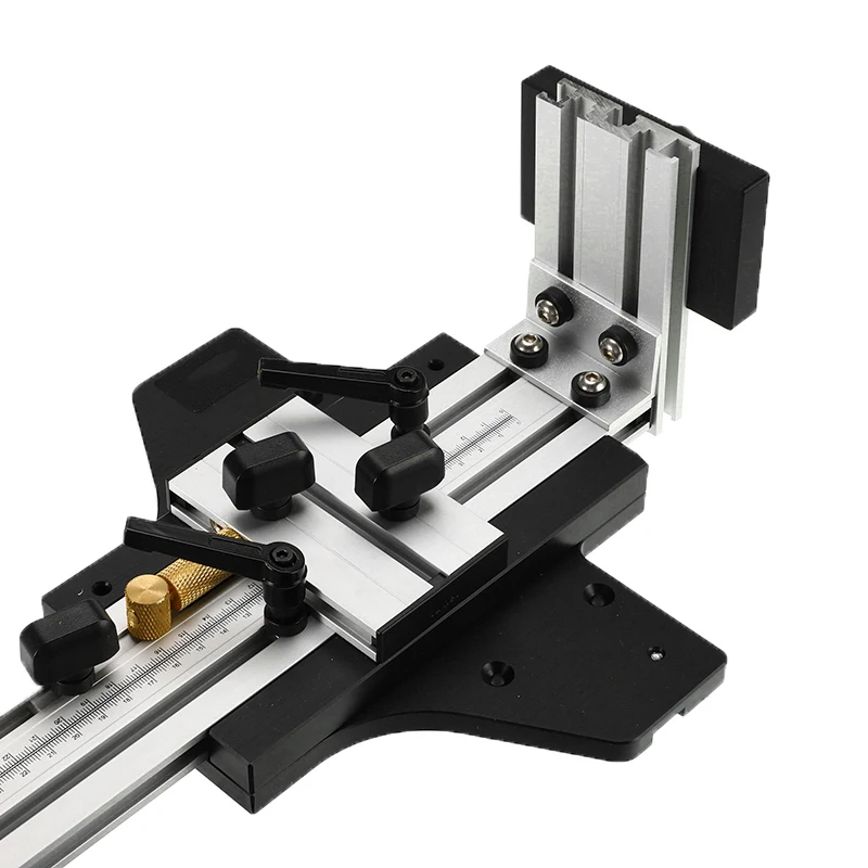 S8 Вставка плиты для станка с ручной фрезой для деревообработки с направляющей линейкой и зажимной накладкой из профиля алюминия, скользящими кронштейнами.