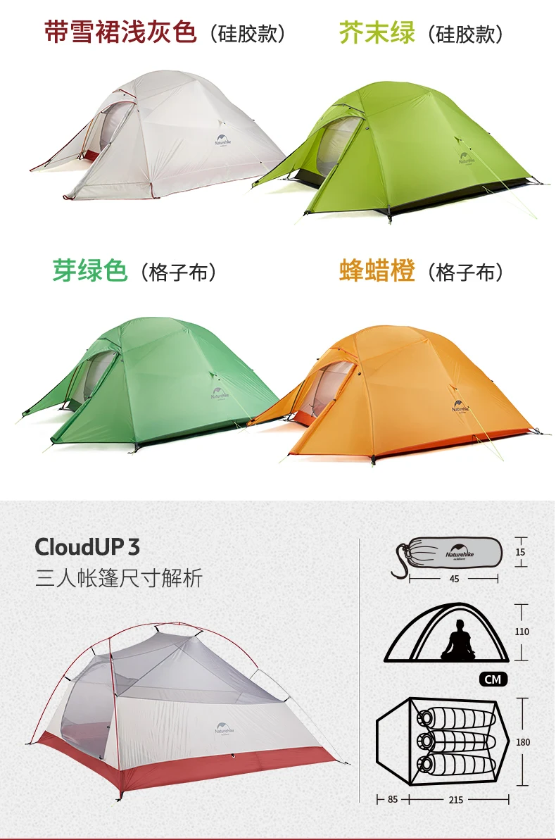 Q & A Diffrence от 20D версии и 210T версии? 20D нейлон версия: Верхний Тент и нижний материал: 20D нейлоновое силиконовое покрытие pu4000мм 210T версия полиэстера: Внешний материал палатки: 210T полиэстер pu3000mm; Материал подошвы: 150D Оксфорд Версия 20D легче, чем версия 210T. Примечание: коврик (размер) свободный. (150D Оксфорд) Вес нетто: Облако 1: 1,35 кг (20D нейлон); 1,65 кг (210T полиэстер) Облако 2: 1,55 кг (20D нейлон); 1,85 кг (210T полиэстер) Облако 3: 1,95 кг (20D нейлон); 2,35 Кг (210T полиэстер) Посылка weigt (включая коврик): Облако 1: 1,75 кг (20D нейлон); 2кг (210T полиэстер) Облако 2: 1,9 кг (20D нейлон); 2,1 кг (210T полиэстер) Облако 3: 2,3 кг (20D нейлон); 2,7 кг (210T полиэстер) Внутренняя ширина палатки: 110 см/125 см/180 см Упаковочный лист: 1 * палатка, 1 * коврик для палатки, веревки, гвозди, 1 * сумка для хранения Быстрая доставка в большинство стран, около 5-15 дней, спасибо!