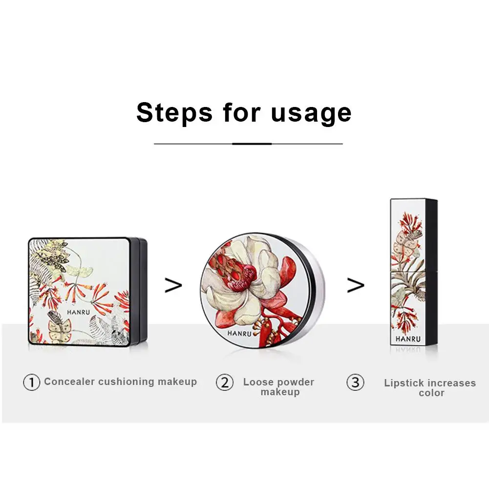 Упаковочный лист:1 * Воздушная Подушка BB крем (содержание нетто около 20 г)1 * Грибная голова пуховка1 * рассыпчатая пудра (содержание нетто около 12 г) 1 * помада (содержание нетто около 3,6 г)