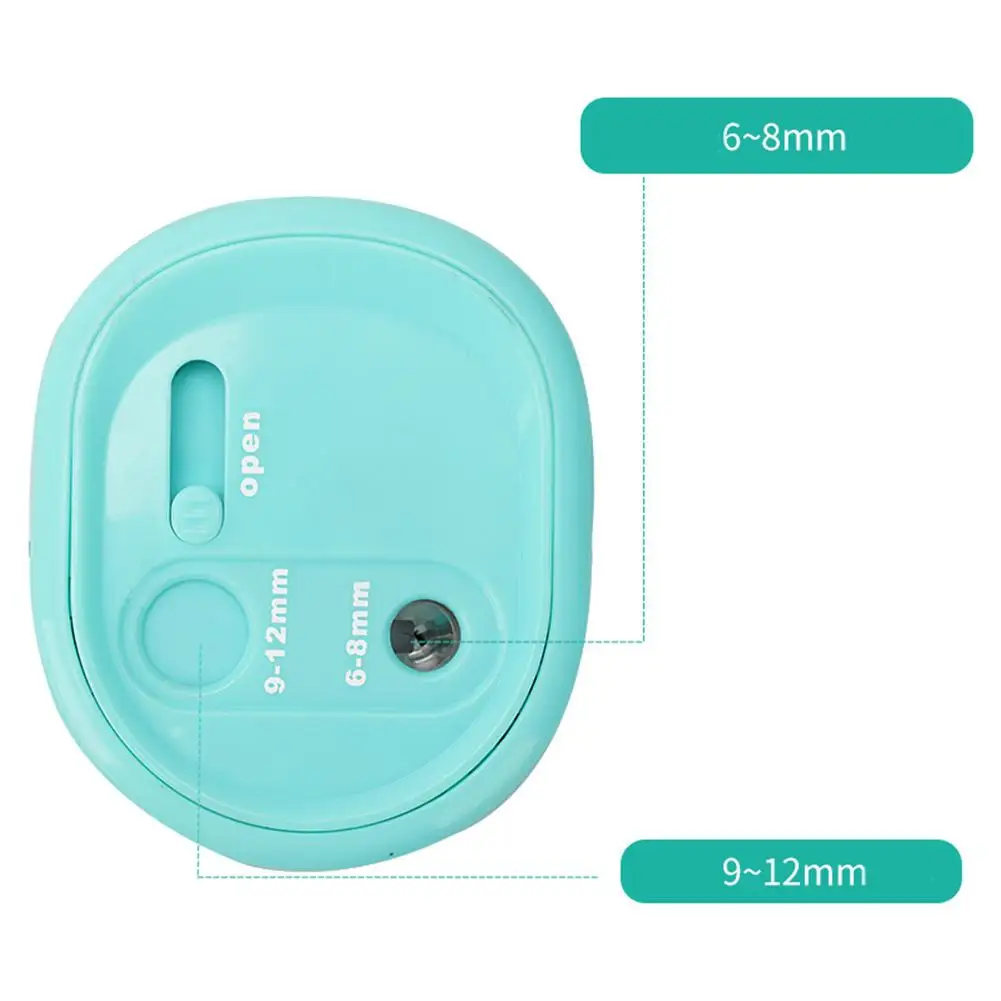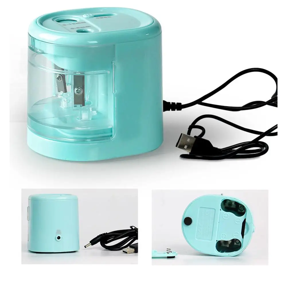 Parameter: Product Name: Electric Pencil Sharpener Color: blue/pink (optional) Product material: ABS plastic Power: 4 AA batteries (not included) / USB power supply Product size: about 65mm × 75mm/2.56 x 2.95in Cutable diameter: diameter: about 6 ~ 8mm/0.24-0.31in or 9-12mm/0.35-0.47in