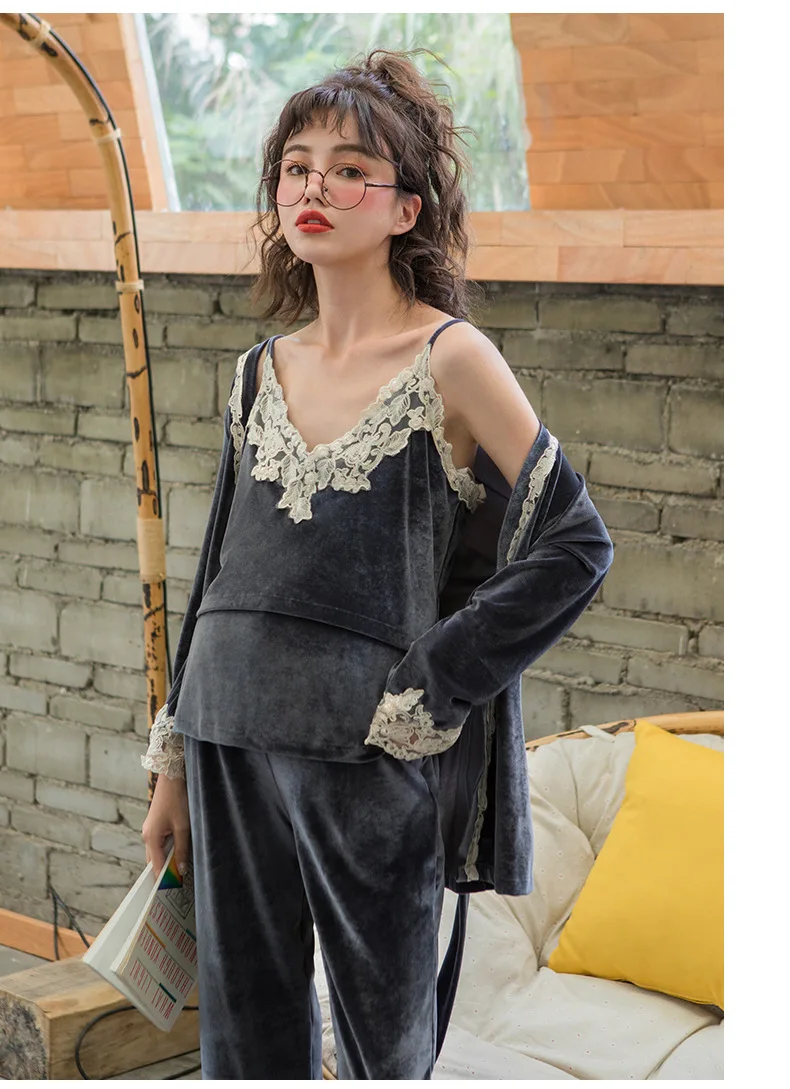 Fdfklak Модальная тонкая одежда для беременных на весну и осень Пижама с длинным