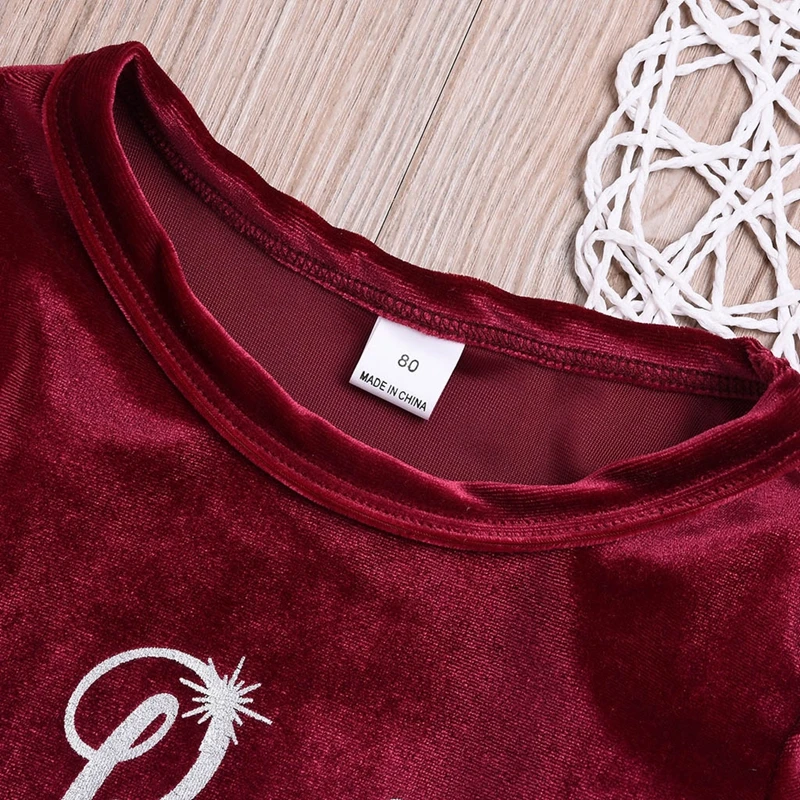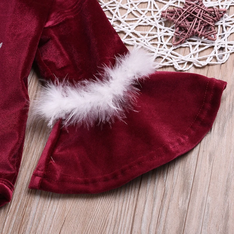 Новое рождественское боди для маленьких девочек; Мягкие плюшевые боди принцессы с расклешенными рукавами и буквенным принтом; Рождественский подарок; Одежда для новорожденных девочек