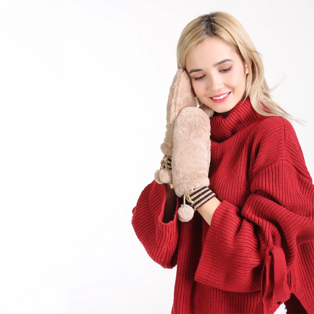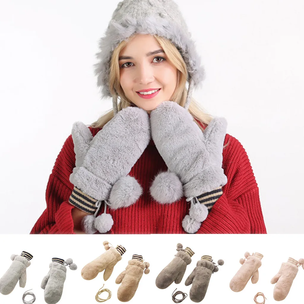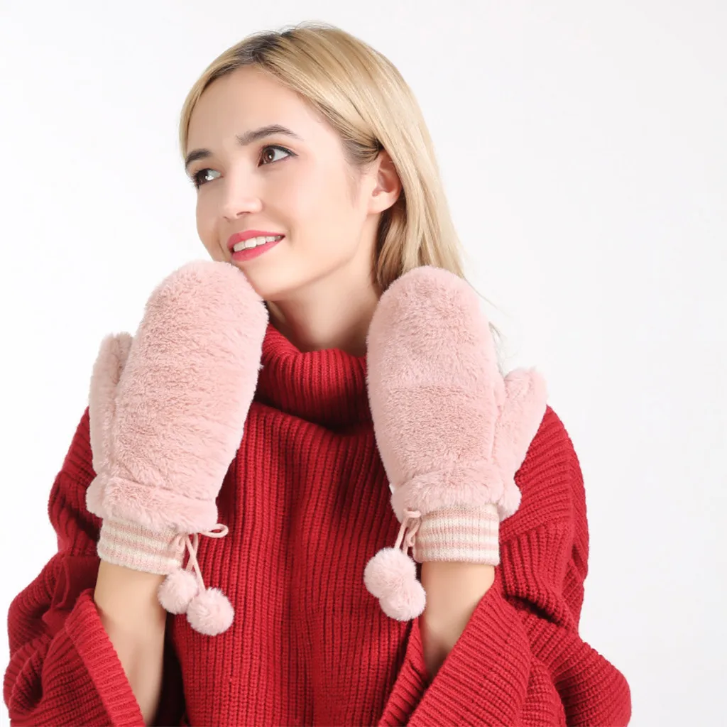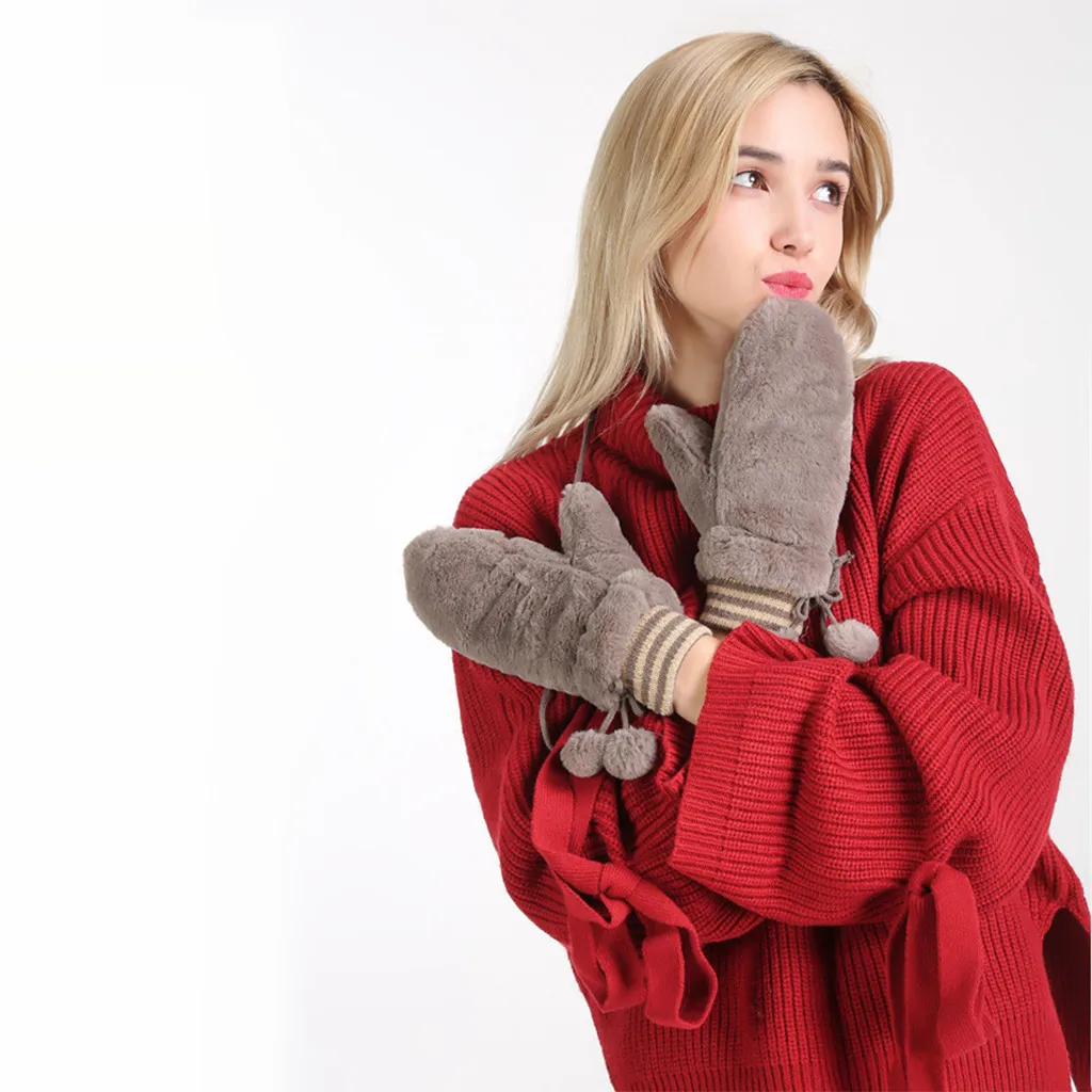 Женские зимние перчатки теплая подкладка-Уютные теплые плюшевые толстые перчатки варежки