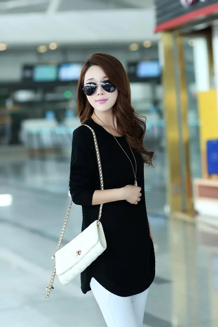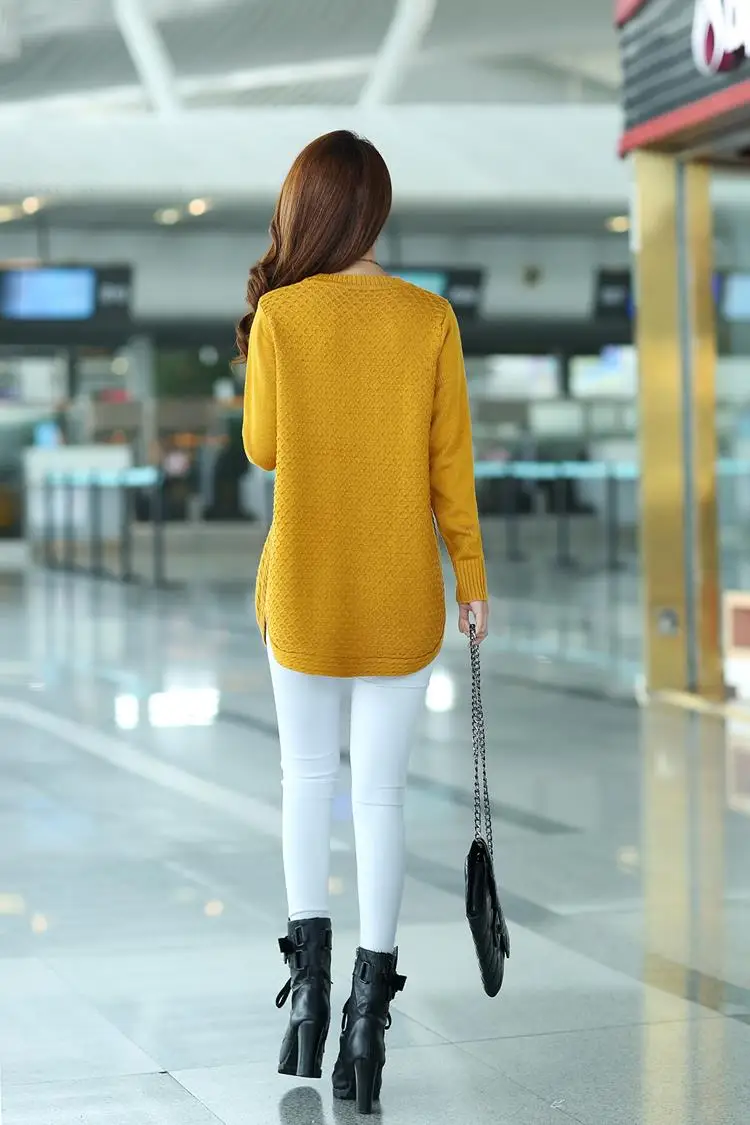 Bayan свитер 2020 Топы осень зима вязаный трикотаж корейский стиль свободный большой размер длинные свитера и пуловеры ropa mujer CH474