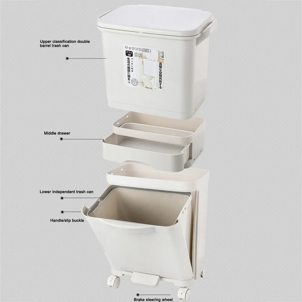 38л большие двухслойные мусорные баки для мусора кухонные вертикальные мусорные контейнеры для сортировки отходов с колесом держатель для мусорного мешка перерабатываемое хранилище