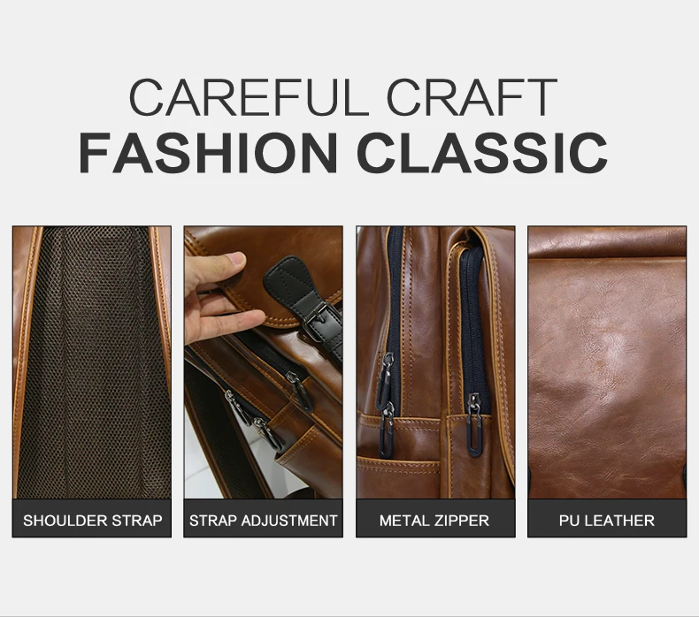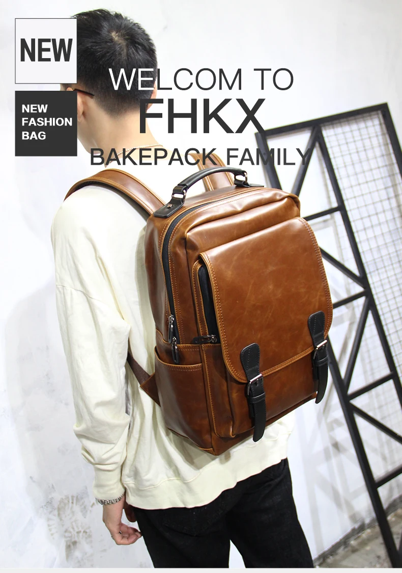 Высококачественный мужской рюкзак из искусственной кожи большой вместимости