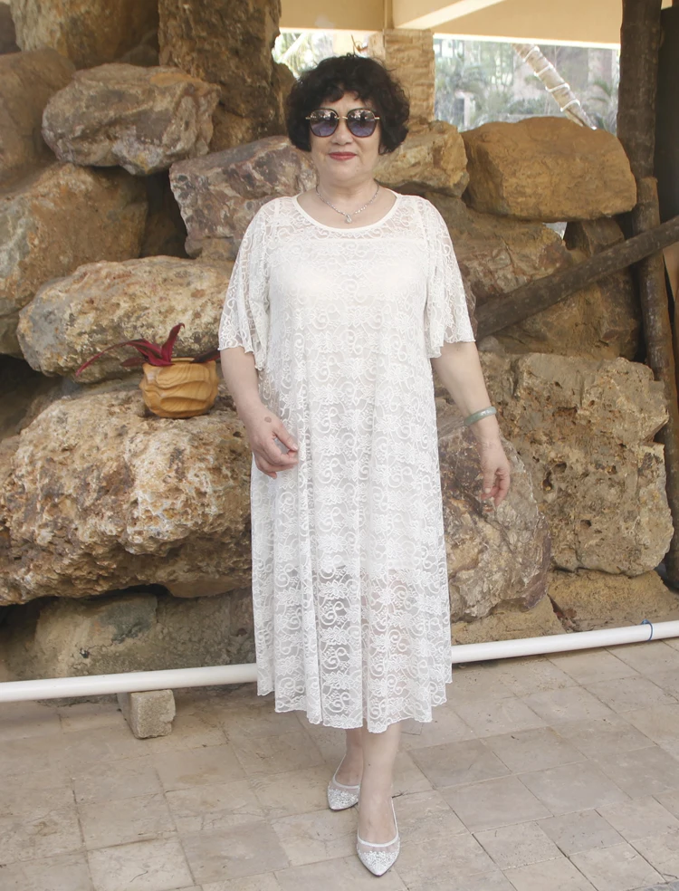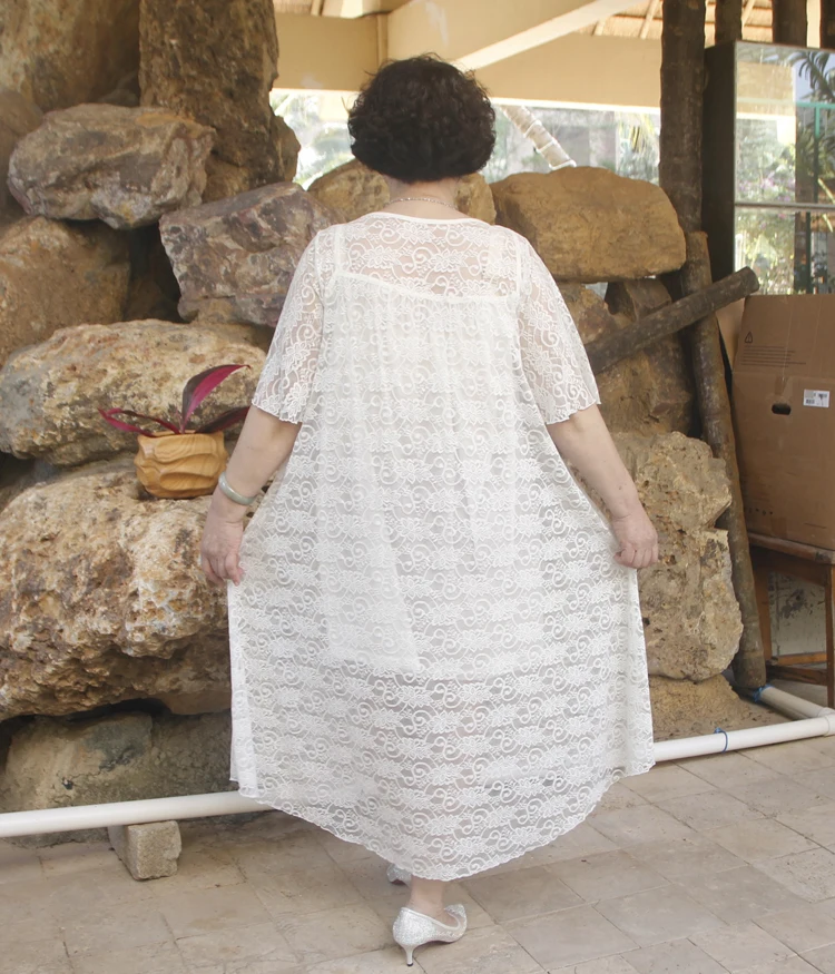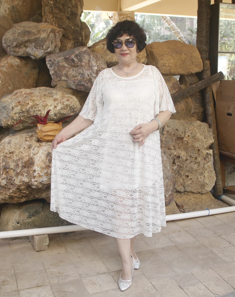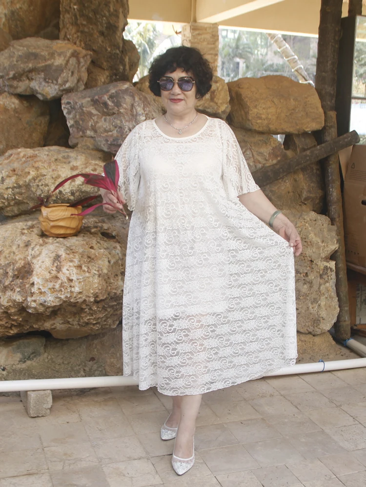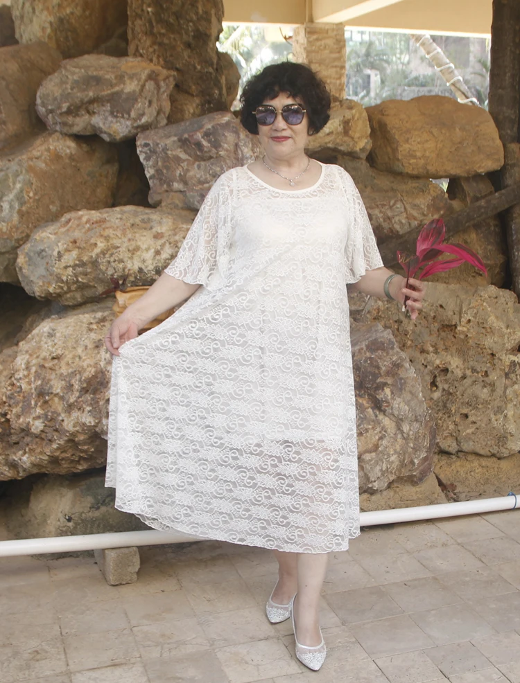 2020 летнее платье для дам в возрасте большой Размеры 6XL платья Лидер продаж Для женщин белый Hol1 из Кружевная туника велюр размера плюс платье DJ486