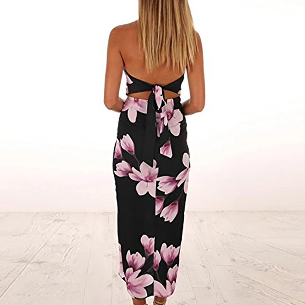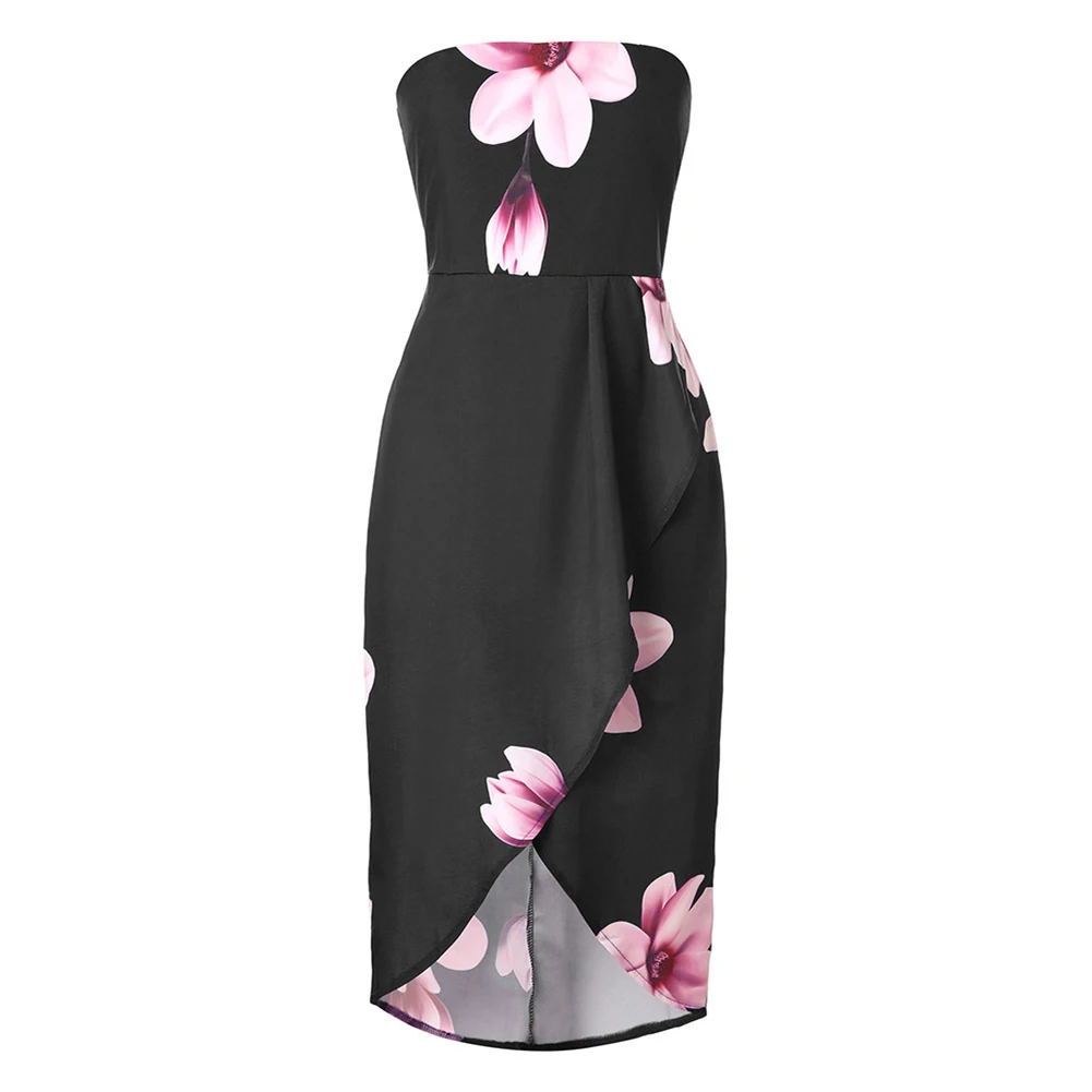 2019 модное сексуальное женское платье с цветочным принтом, Несимметричное платье с перекрестными ремешками для летней вечеринки, элегантное облегающее платье с подолом русалки без бретелек, макси платье Vestidos
