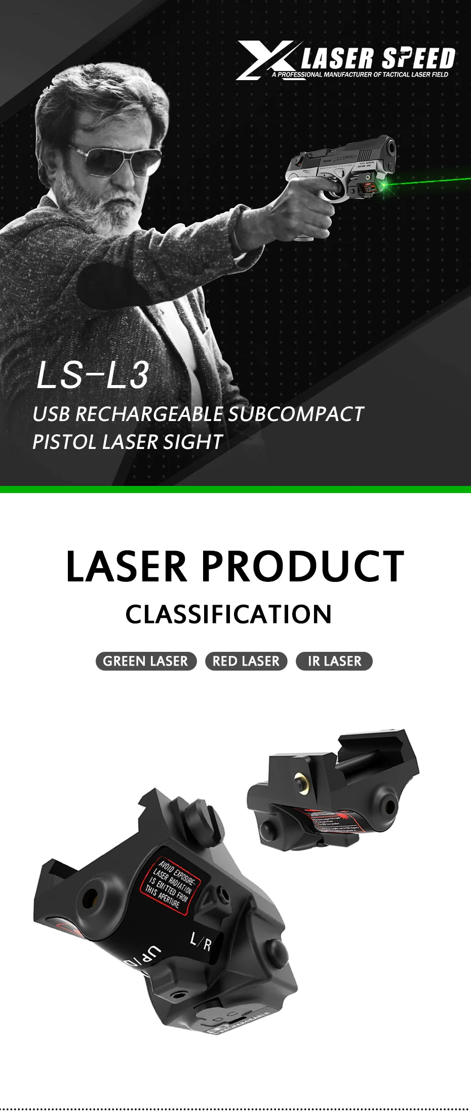 Подходит для всех пистолетов с направляющей Пикатинни. Ударопрочная и минусовая работа. Можно регулировать лазер (L/R, U/D)