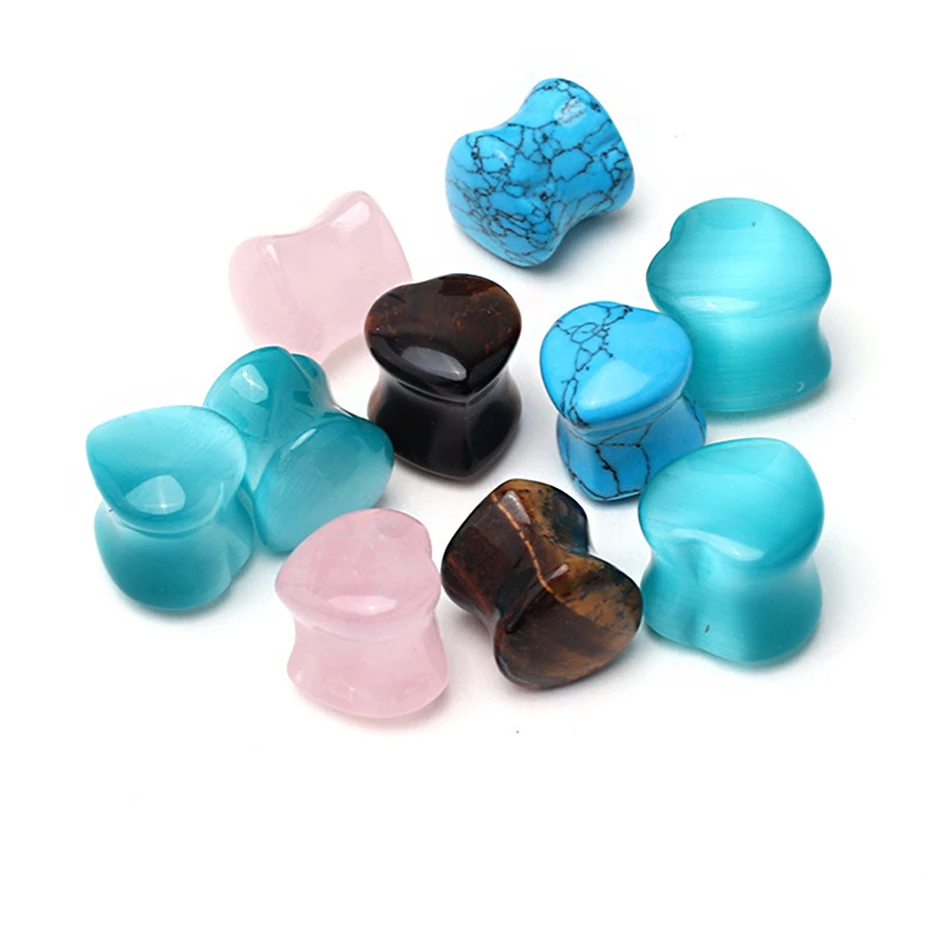 Украшения для пирсинга тела из акватического природного камня - насадки на уши с двойным вырезом в виде конкавного тоннеля для растяжения.